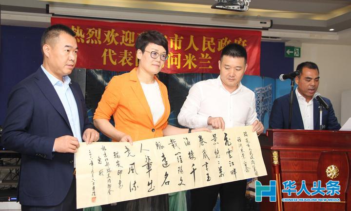 郑海洁团长向旅意北部瑞安同乡会授“乡贤米兰驿站”牌匾